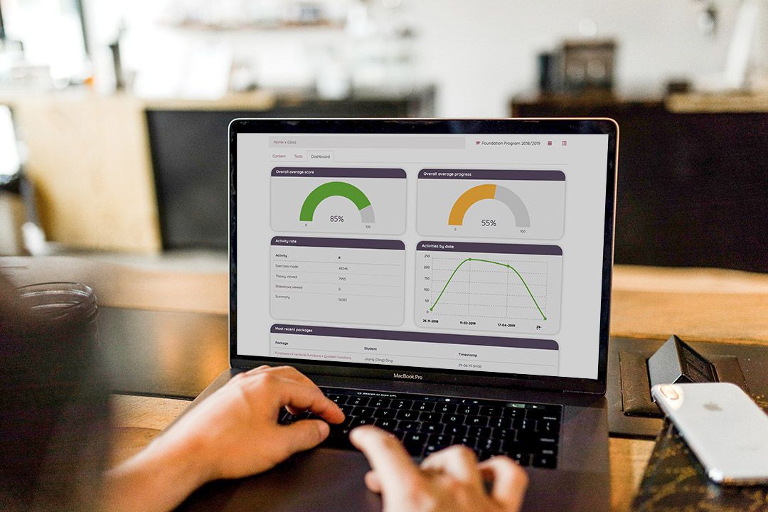 Track the performance of your students with our elaborate reporting suite. Every course has a dashboard giving you an overview of the results of your students, allowing you to see where students get stuck and use that information in your classroom to improve the quality of your lessons. You can also get insights into the learning progress of individual students and replay their individual answer attempts. Do you want to unleash your own analysis on the results? Simply download the results to Excel.